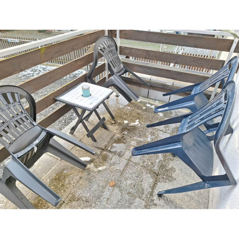Ein kleiner Außenbereich direkt vor der Wohnung bietet 4 Sitzgelegenheiten und rundet das Angebot ab.
